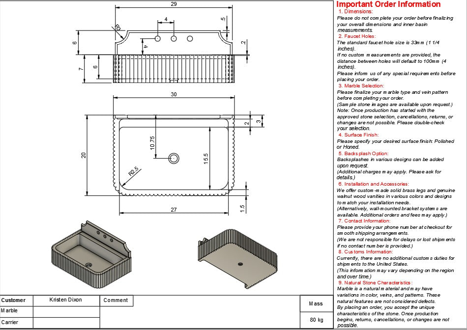 fluted apron sink with an integrated backsplash, in Calacatta Viola marbl