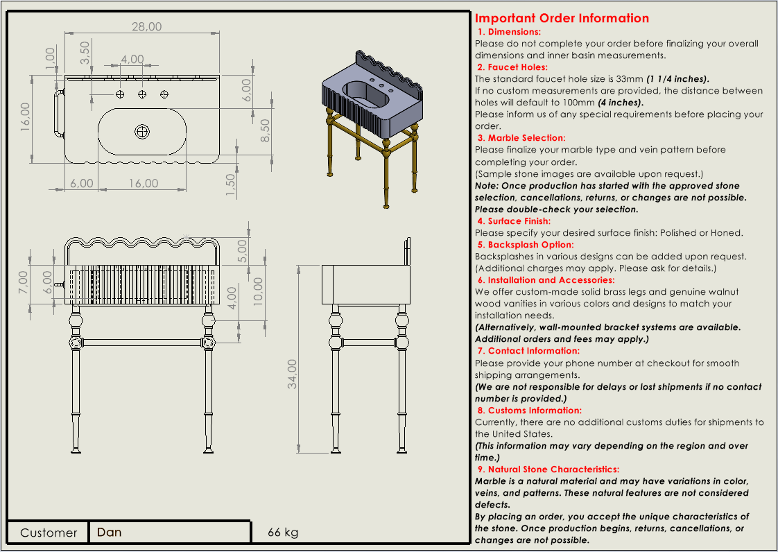 The faucet, metal legs, and wall mounting bracket that may be visible in the images are not included in the product price. They must be purchased separately.