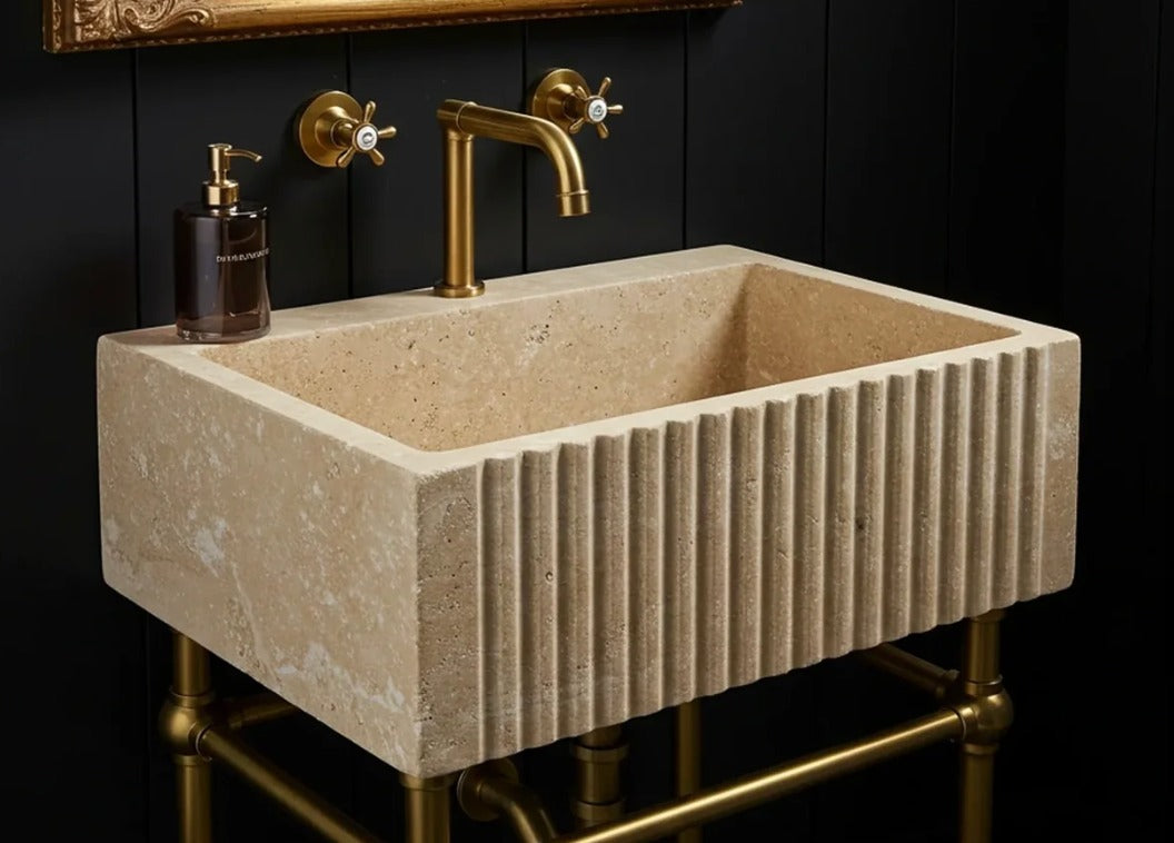 TRAVERTINE SINK WITH FLUTED FRONT FACADE